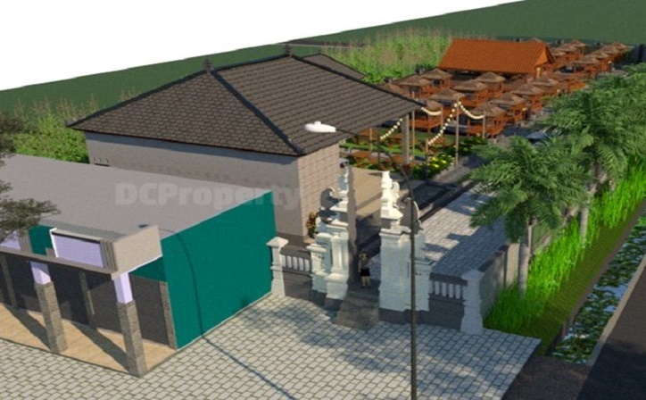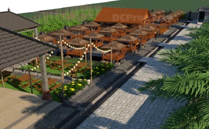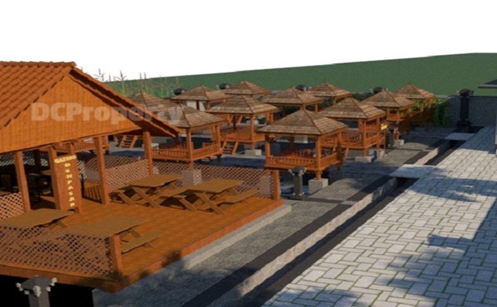 Warung apung view persawahan dengan design bangunan yang dipadukan antara gaya Bali dan Jawa